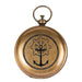 The Voyager's Pocket Compass is made of brass with a glass cover over the compass face. It employs a hinged cover that when opened by pressing the release button, reveals a compass inside. The cover features an etched anchor and nautical design sure to delight any sailor (or hopeful sailor).