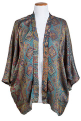 Wrap yourself up in the stunning Modern Journey Kimono. This jacquard kimono is handmade by artisans working with CRC (or Craft Resource Center) in Kolkata, India. CRC is committed to using only environmentally friendly methods and materials while developing self-sufficiency for a vulnerable segment of society through traditional handcrafting skills.