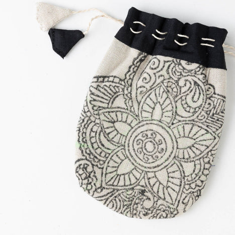 This handcrafted gift bag is the perfect size for jewelry, a petite present or any treasure you want to pack for travel. Use to organize your make-up, collect precious stones or make your own advent calendar during the holidays to count down the days of your celebration. Handmade by artisans with Sana Hastakala, which means "small handicraft" in Nepali. Each order includes one gift bag. Photos for sample purposes only. Print design and color vary widely and are selected randomly when packaged for shipping.