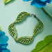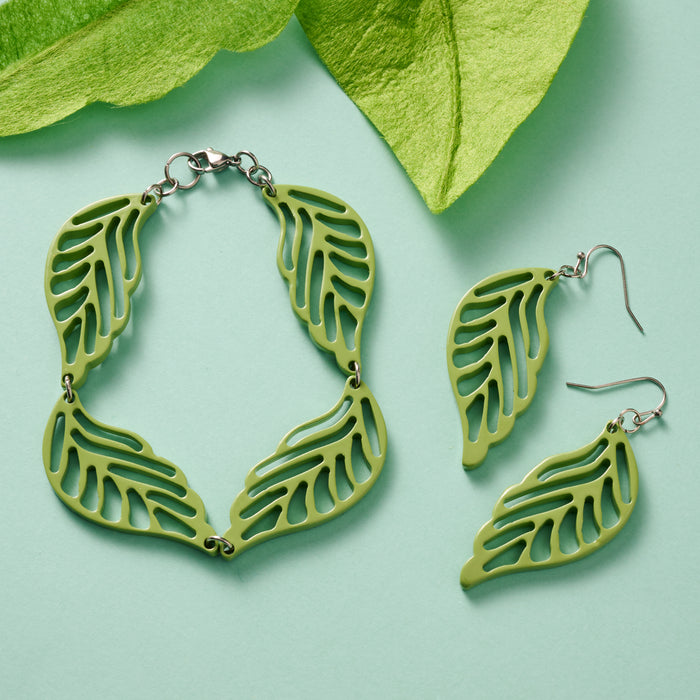 Refresh your style with the lush look of this beautiful bracelet. Crafted from horn and stainless steel, the unique design boasts four intricately cut and painted leaves connected by jump rings. A lobster claw closure provides a secure fit. A Ten Thousand Villages Exclusive handcrafted in Vietnam.