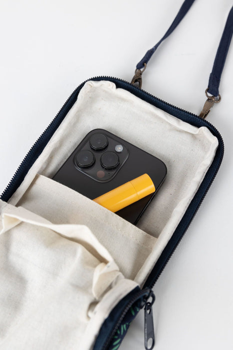 Just the right size for phone, wallet and sunglasses for out and about. Good quality construction and nice fabric