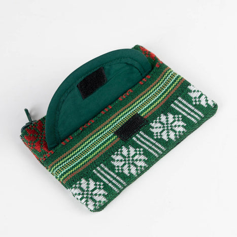 The Green Jacquard Coin Purse with pocket up front by Mai Handicrafts is great for corralling coins and other small items. Use it to carry lip balm, a tiny grocery list or cards you might need. Cute and handy.