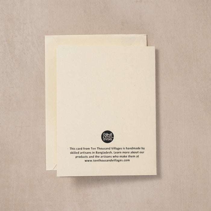 Show that special someone how much you care with this gorgeous handmade jute paper card! This rectangular card features a beautifully crafted, vibrant red quilled heart on a cream background. Inside, there are two blank inserts for personalization. A striking, keep-sake design suitable for framing. Complete with envelope and gold seal. Handcrafted in Bangladesh.