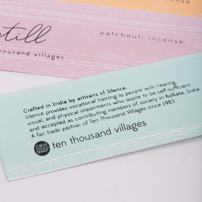 Be still. Enjoy a fresh touch of the outdoors, indoor with a stick of jasmine-scented incense from India. In a country where stable employment is scarce, people with disabilities rarely find work; Silence provides vocational training and employment, empowering people with hearing, visual, and physical impairments.