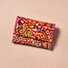 This vibrant wallet features a bold abstract design on the exterior, while the interior is lined with luxurious red leather. With three card slots, a coin opening and a zippered pocket, it has everything you need to stay organized. The snap closure provides convenience. Bring a bright touch of artisan style and functionality to your accessory collection. A Ten Thousand Villages Exclusive handcrafted in India.