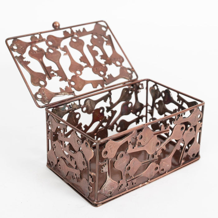 This box is handcrafted from recycled iron keys by artisans working with our fair trade partner Noah's Ark in India.