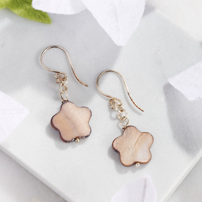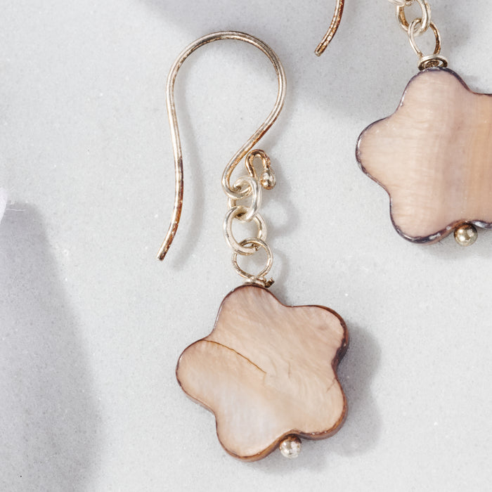 Put your inner nature-lover on display with these gorgeously crafted earrings! The drop design features a delicate flower carved from ivory mother of pearl complete with petal detail. The sterling silver hooks add a touch of elegance and provide an easy, comfortable wear. A delightful addition to your jewelry collection! A Ten Thousand Villages Exclusive handcrafted in Indonesia.