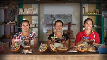 Mitra Bali, a nonprofit, nongovernmental organization, functions loosely as a cooperative representing artisans who make wood, silver, bamboo, coconut, ceramic and other handicrafts. Located on the island of Bali, the organization was formed in 1993 to support poor artisans facing ruin because well-established businesses controlled prices and monopolized the burgeoning Bali tourism market. The cooperative only works with producers who support gender equity, provide healthy working conditions, use environmentally sustainable materials, and do not exploit child labor or women. Mitra Bali helps artisans during periods of low orders with no-interest loans and the loaning of cows. Mitra Bali also supports a reforestation program, an environmental initiative, as well as an effort to prevent artisans from selling their land. Ten Thousand Villages has purchased from Mitra Bali since 1989.mitra-bali
