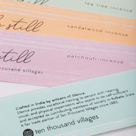 Be still. Enjoy a moment of peace with a stick of lavender-scented incense from India. In a country where stable employment is scarce, people with disabilities rarely find work; Silence provides vocational training and employment, empowering people with hearing, visual, and physical impairments.
