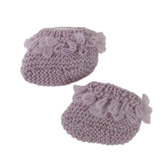 Cute, stay-put, fully lined for comfort, keep kiddo's feet warm with the Little Fawn Knit Baby Booties. Handknit in 100% ethically sourced sheep's wool and fleece-lined, these darling booties are a perfect gift for little ones. With their long looping fringe detail, they're cute as can be.