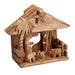 An olive wood nativity playing "Silent Night" was carved near Bethlehem in Beit Sahour. Raja Bannoura and his family hand-carve nativities from pruned olive branches. Since Raja started the workshop in 1974, olive wood nativities, ornaments and carvings have provided hope and harmony as neighbors have worked together creating beautifully carved figures in a community unsettled by civil violence. The music box is hidden in the roof of the stable. Wind the star to hear the melody.