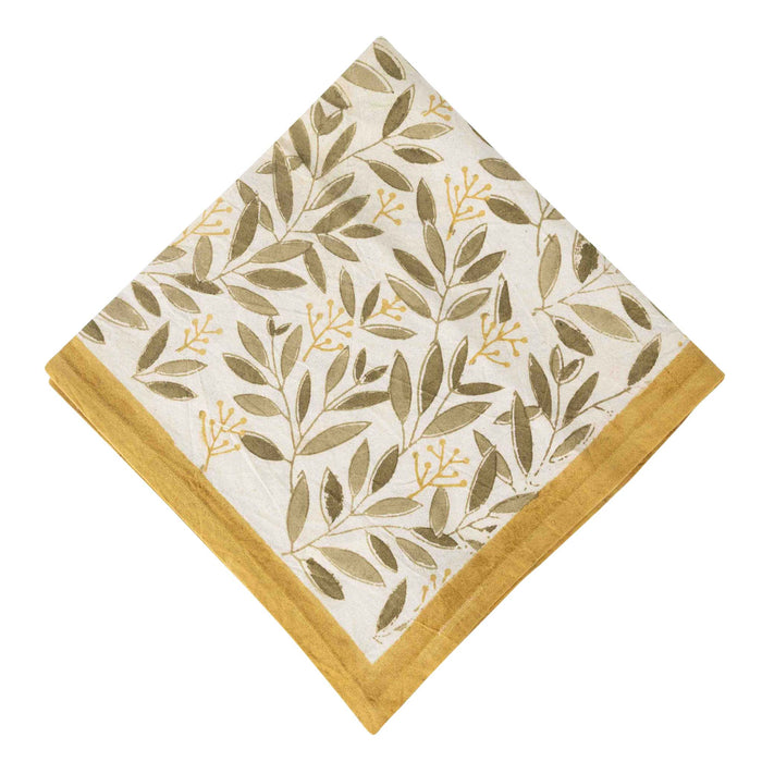 Make every meal a celebration with 100% cotton block printed Umber Bounty Cloth Napkins. Each napkin is one-of-a-kind because they are block printed by hand by artisans with Asha in India. Block printing is a heritage craft, a multi-step process that includes mixing natural dyes, sketching designs, then carving these intricate patterns into thick wood blocks, a separate block for each color in the design. This is all before the textile is woven, often by hand, washed, sun-dried, then prepped for printing. Which is done by the steadiest of hands, repeating the pattern over swaths of cloth draped over long tables. It’s an ancient technique carried on by artisans who handcraft these stunning one-of-a-kind pieces. When you hold one, you can feel the richness of its story and how it was made.