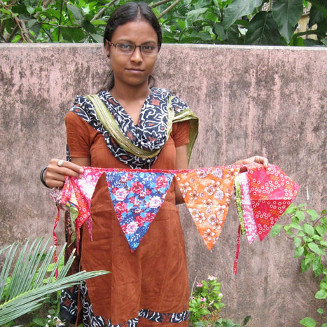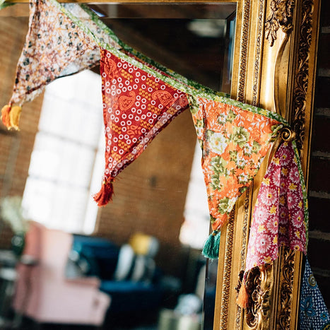 Enjoying the colorful and nicely made festival garland. The choice of material is great and is as pictured on line. It adds just the right amount of color and lift to our screened in porch.