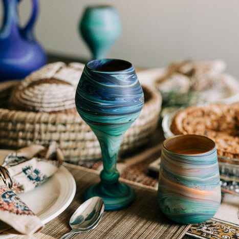 Named for its location, Hebron Glass is located in the historic West Bank city of Hebron, well-known for its traditional glass-blowing. Hebron Glass operates three main workshops in Hebron, in addition to artisans who work in their own homes. Some 60 artisans, women and men, work with Hebron Glass, earning excellent income and benefiting from safe working environments.Established in 1890, Hebron Glass is a family business that has expanded over the years and is now exporting traditional glassware and ceramics products. The group aims to build lasting relationships with fair trade associations and provide artisans with orders throughout the year. All tabletop items created by Hebron Glass are lead-free and safe to use. Ten Thousand Villages introduced its first products from Hebron Glass in 2009.hebron-glass