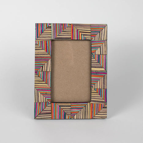 This bright Prism Wood Frame is handcrafted from dyed wood pieces by artisans working with our fair trade partner Tara Projects in India. With new opportunities to earn sustainable income, artisans are transforming their lives and their communities.