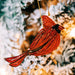 Carefully crafted of quilled paper, this stunning cardinal Christmas ornament is one-of-a-kind. Cleverly handcrafted from recycled paper in a sustainability initiative, this work of art hangs from a gold metallic string, ready to chirp in your Christmas tree.