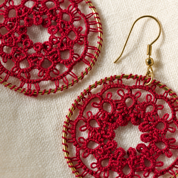 Red Medallion Tatted Drop Earrings - Ten Thousand Villages