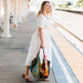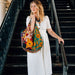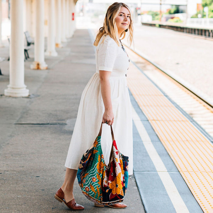 This is a lightweight shoulder bag, lined with a plain fabric. The bag has two outer pockets and one inner zipped pocket large enough for a wallet, checkbook and phone and/or other small items. I used this bag today to do some grocery shopping, as it is pretty capacious and fits comfortably on one shoulder. The colors of my particular bag are really lovely and look great with my olive drab army-style jacket.