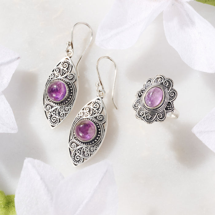 • Materials: Brass with Silver Oxidized Electroplating, Amethyst Stone