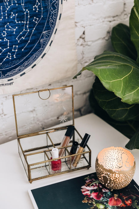 I purchased this to store some sentimental costume jewelry that my grandmother has given me over the years. Since I don't wear costume jewelry often I was looking for a jewelry box that would allow me to see the pieces each day. And this was perfect! The etched stars and gold trim is absolutely beautiful and adds a nice, but not bulky, pop to my vanity!