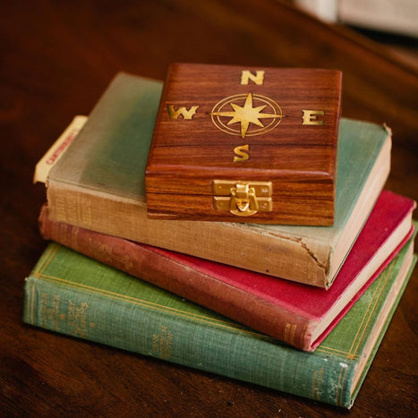 A fine compass in a sheesham wood box is a gorgeous gift for any adventurer. This item was made with love by the artisans of the Noah's Ark International Exports group, based out of Moradabad, India.