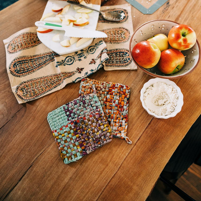 These little pot holders definitely add charm to the kitchen and cooking experience. They make lovely gifts. I really like the uniqueness of each one and that they are recycled.